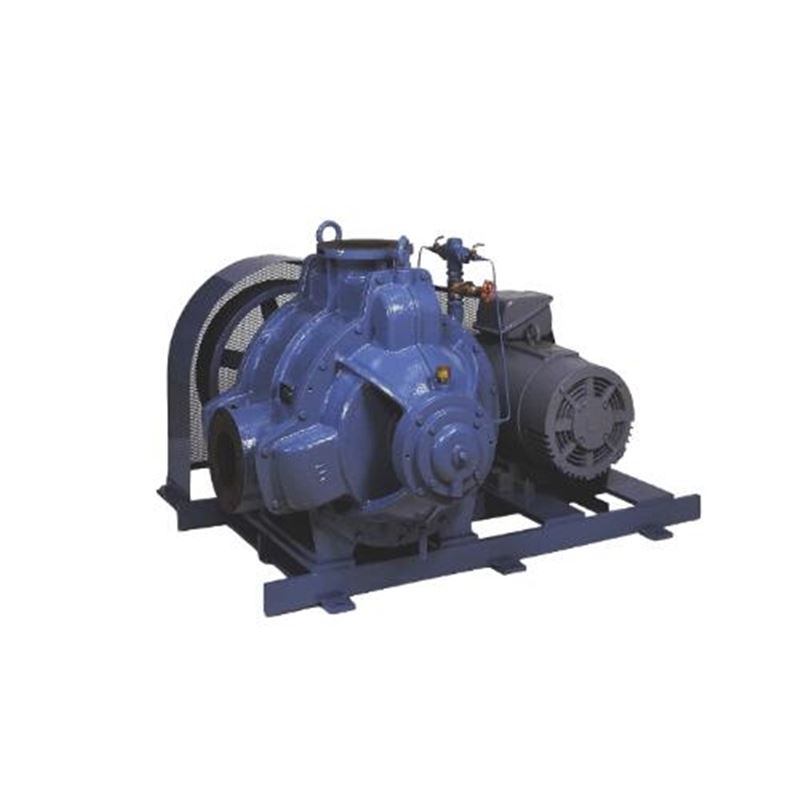 适量的封水被供给到套筒内,转子在此旋转,封水因离心力作用附着于套管内壁面水流汇聚,形成水环,同时在中心部位形成空间。转子其旋转中心相对于套管内壁是偏心的,因此转子由叶片和叶片之间包围的空间部分的容积,随着转子的旋转而增加不断重复加·减少。即羽根与羽根之间的各空间做往复运动在泵中,相当于气缸,起密封作用的是活塞会成为。由于这种作用,随着转子的旋转,转子内侧设置的从端部气缸的吸入口吸入气体,压缩后从排气口排出排气工序依次重复进行。当水封式真空泵在接近到达压力时运转,会急剧吸入空气量会减少。为防止此情况,需用水通过将其安装在封式真空泵的前段,可改善真空泵单体的性能大幅提高排气速度,并在更高真空度下运行能实现。远比单独使用真空泵获得的性能要好得多耗电量会减少,因此单位排气量的运行其特点是可以大幅降低成本。通常情况下,若机械增压器在较高的压力比下使用内部温度升高,只能在有限的压力范围内使用。因此,如下图所示,在机械增压器上安装逆流冷却机构设有。采用逆流冷却方式的机械室T型规格范围大幅拓宽,可安全获得高压比。在水封式真空泵的前端串联一台机械增压器有TAH型和两台组合的TAK型